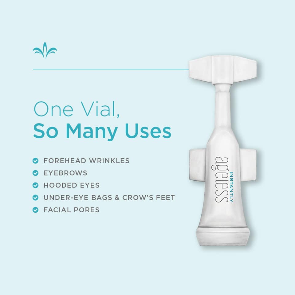 Instantly Ageless® can be applied to smooth out all kinds of skin imperfections. Use it to erase dark circles, wrinkles, hooded eyes, acne scars, crow’s feet, enlarged pores and more!