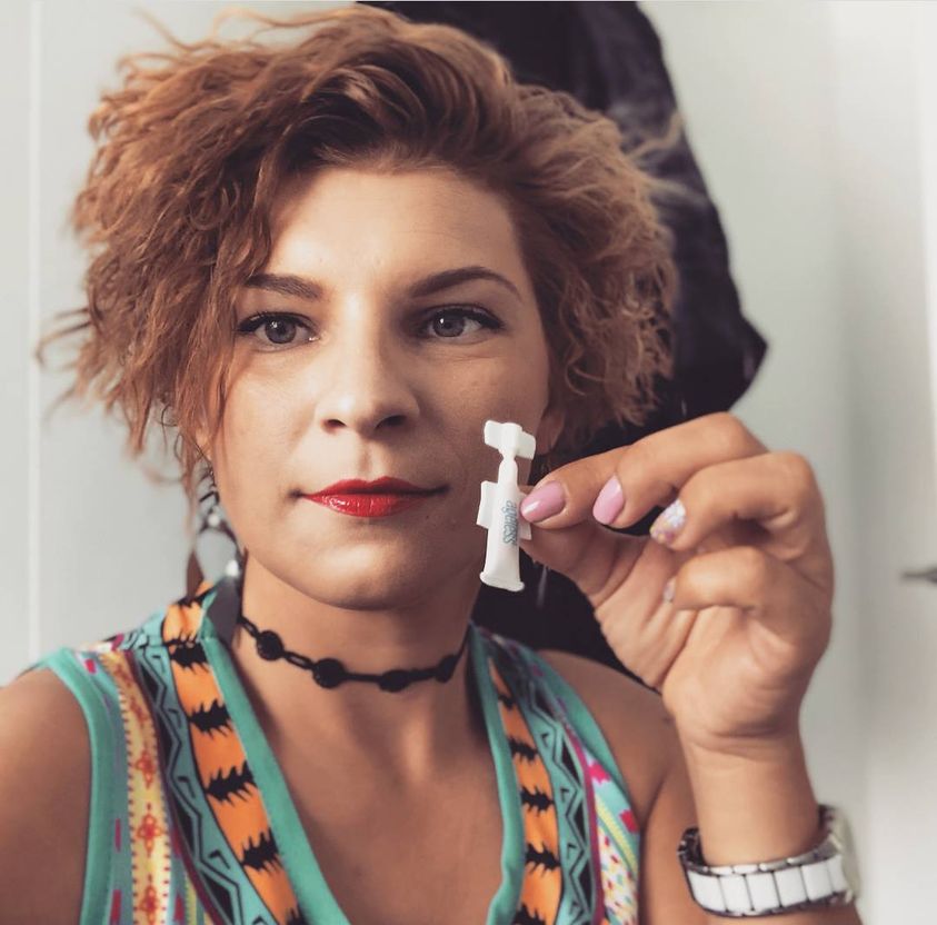 Wash or cleanse your face first, then use Instantly Ageless Moisture Lift (or any water based moisturizer). Twist off the cap and squeeze a small amount onto your fingertip. Using your fingertip, lightly tap a thin layer of Instantly Ageless onto desired areas (do not rub in). Avoid the eye area. Once applied, remain expressionless for 2-3 minutes while the product dries to achieve dramatic results. Fanning the area helps speed up drying time. Replace cap onto vial for future use.